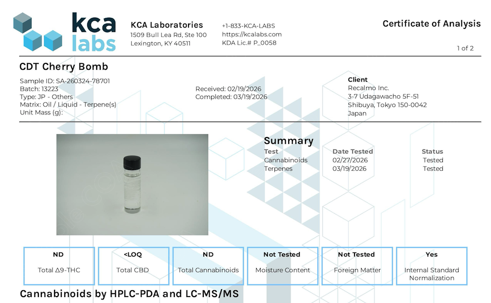 CDT(100%カナビス由来)ならではの香りの強さと奥深さ、複雑なプロファイルがアントラージュ効果を引き立てます。
